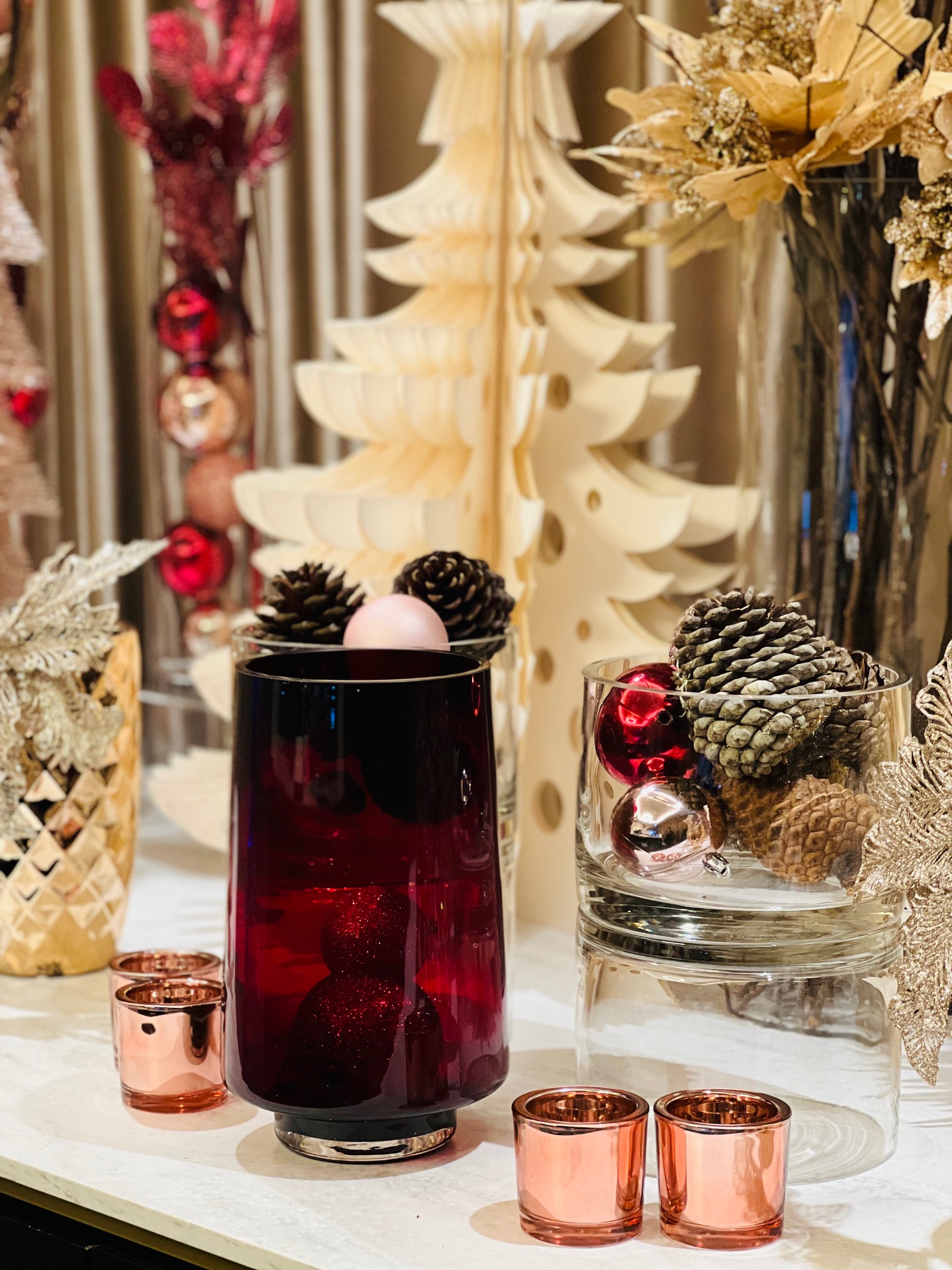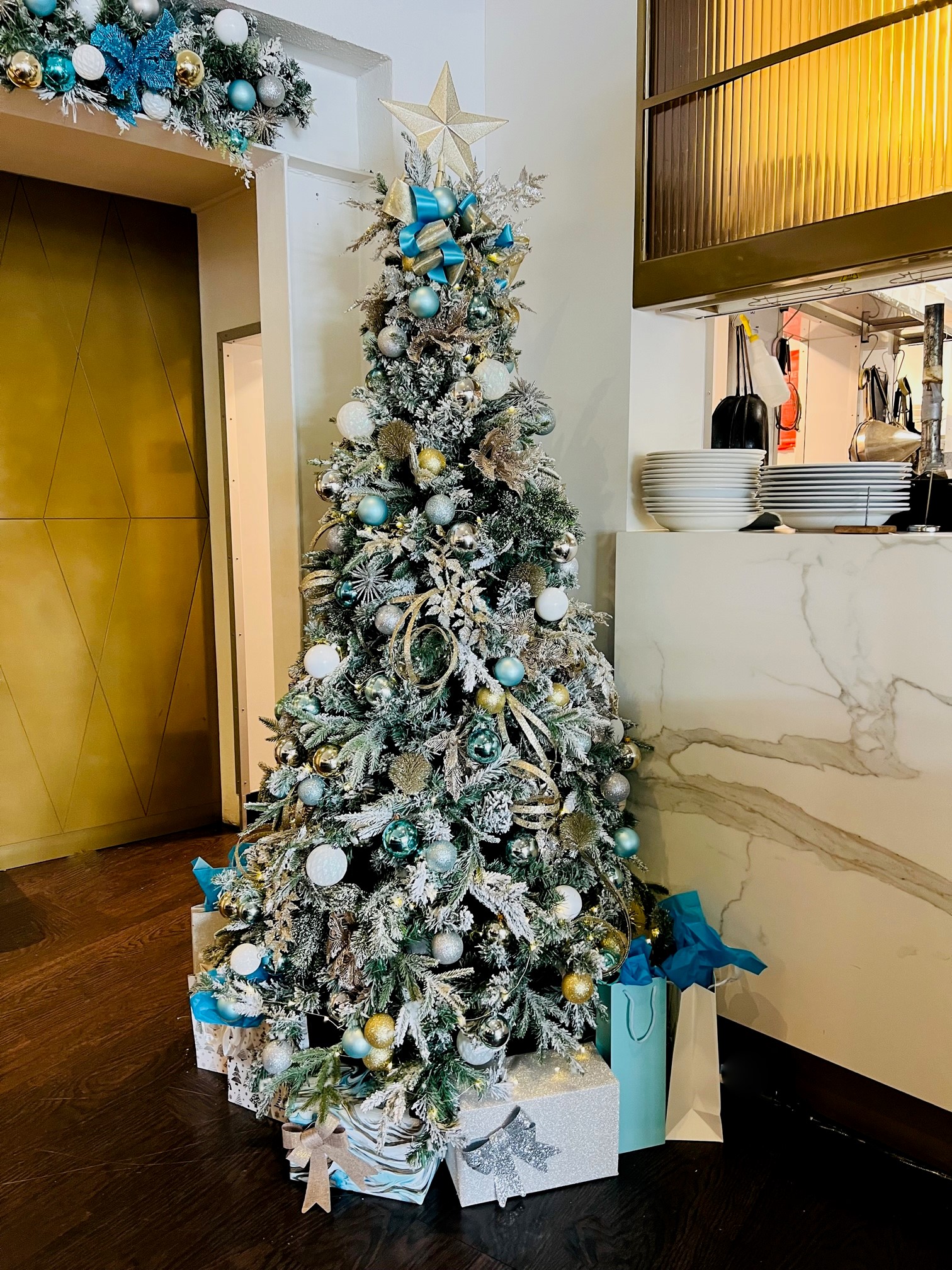 What better way to bring Christmas cheer into your restaurant, bar, or retail space than with a sparkly Christmas interior to celebrate the season!